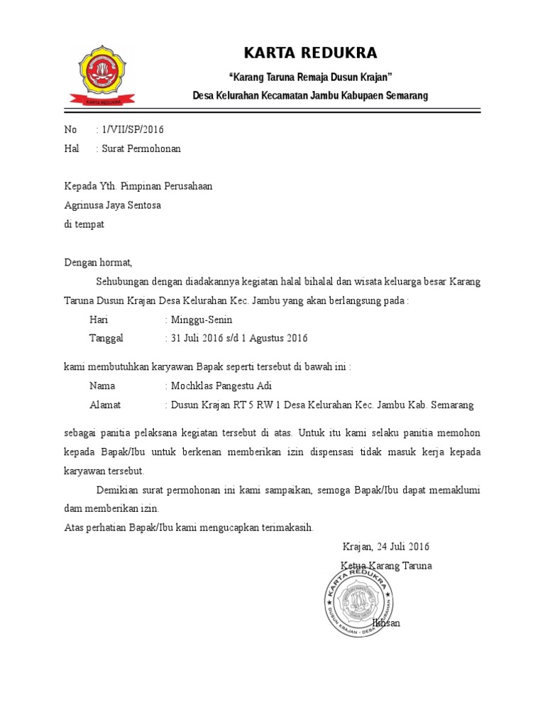 6. Sertakan data diri dan kelompok yang akan melakukan kunjungan pada surat pengantar tersebut.